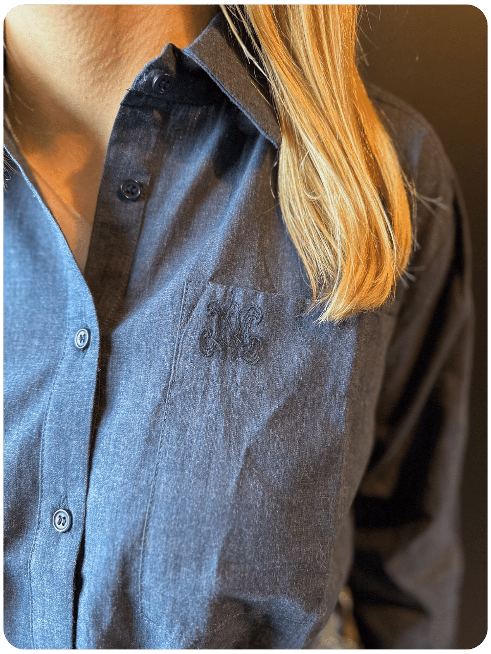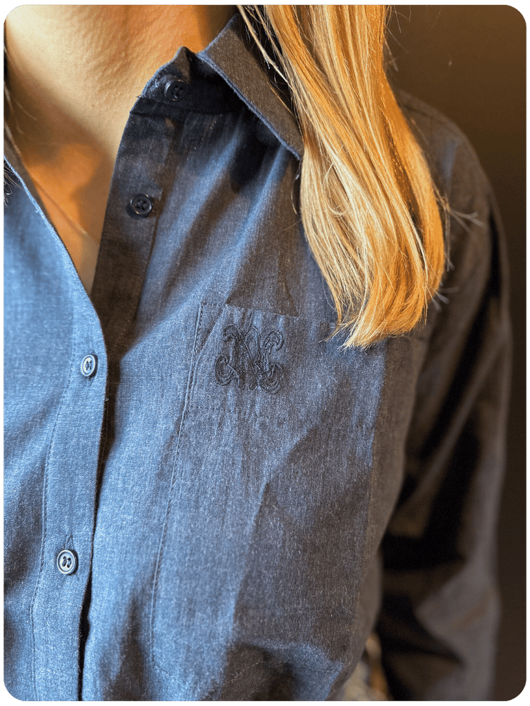 Son petit truc en plus: sa petite broderie élégante au niveau de la poche poitrine, une pépite !
